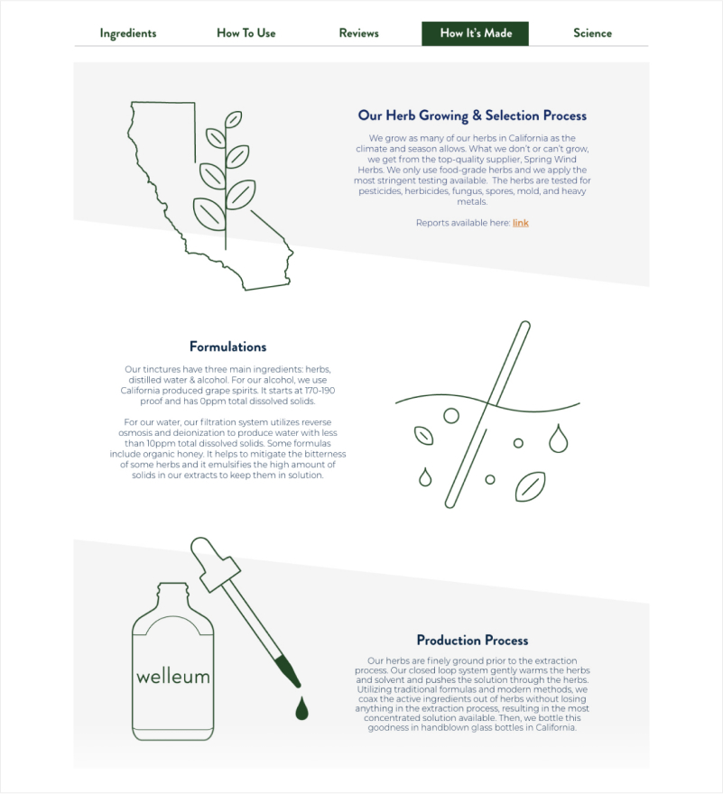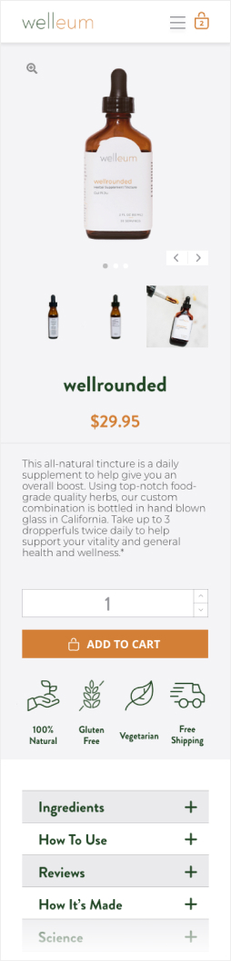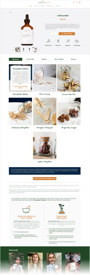 Welleum is a line of products that brings Eastern traditional medicine to the Western world with virtual consultations and custom tinctures made for customers. The client and stakeholders had an existing e-commerce site and came to DXagency for improvements.