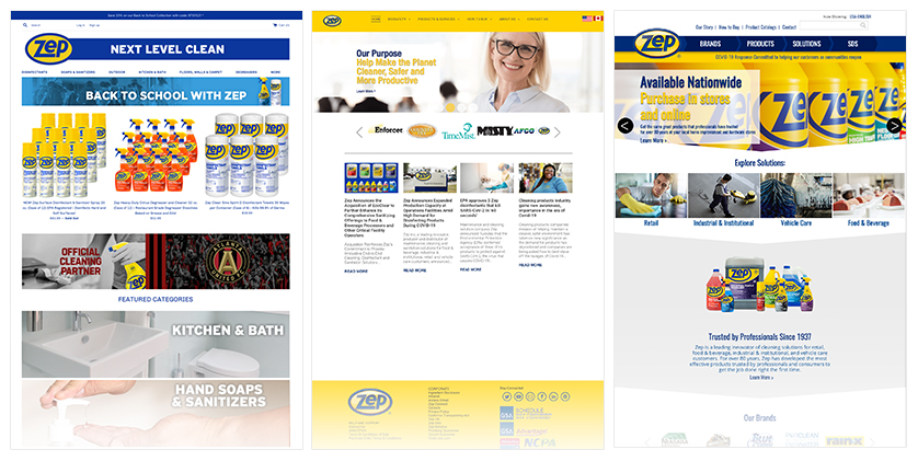 Previously, Zep's e-commerce and industrial offerings resided on separate product-focused domains, with a third site hosting corporate history, information, and news updates.