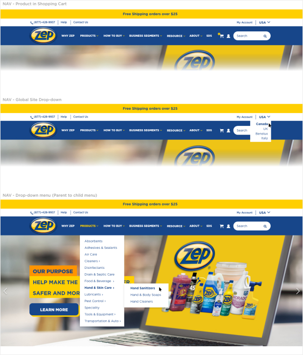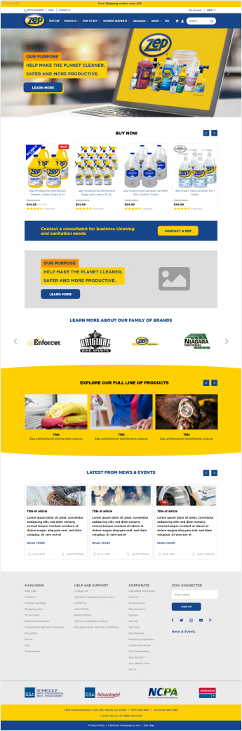 Zep is a major distributor of maintenance, cleaning, and vehicle care solutions across retail, food & beverage, and industrial markets. As the lead designer, oversight of the entire design process ensured the new consolidated website met Zep's needs and expectations.